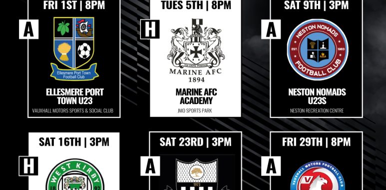 We get the campaign underway away at Ellesmere Port on Friday 1st August, followed by a home clash with Marine AFC Academy and a trip to Neston Nomads U23s.