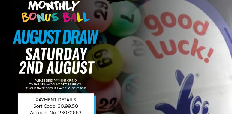 Please send payment for AUG Lotto Draw Number to the below bank details and we will update the table as payment is received. If you no longer want your number please let us know. If payment is not received by the Friday before 9pm your number will be offered to somebody else.
